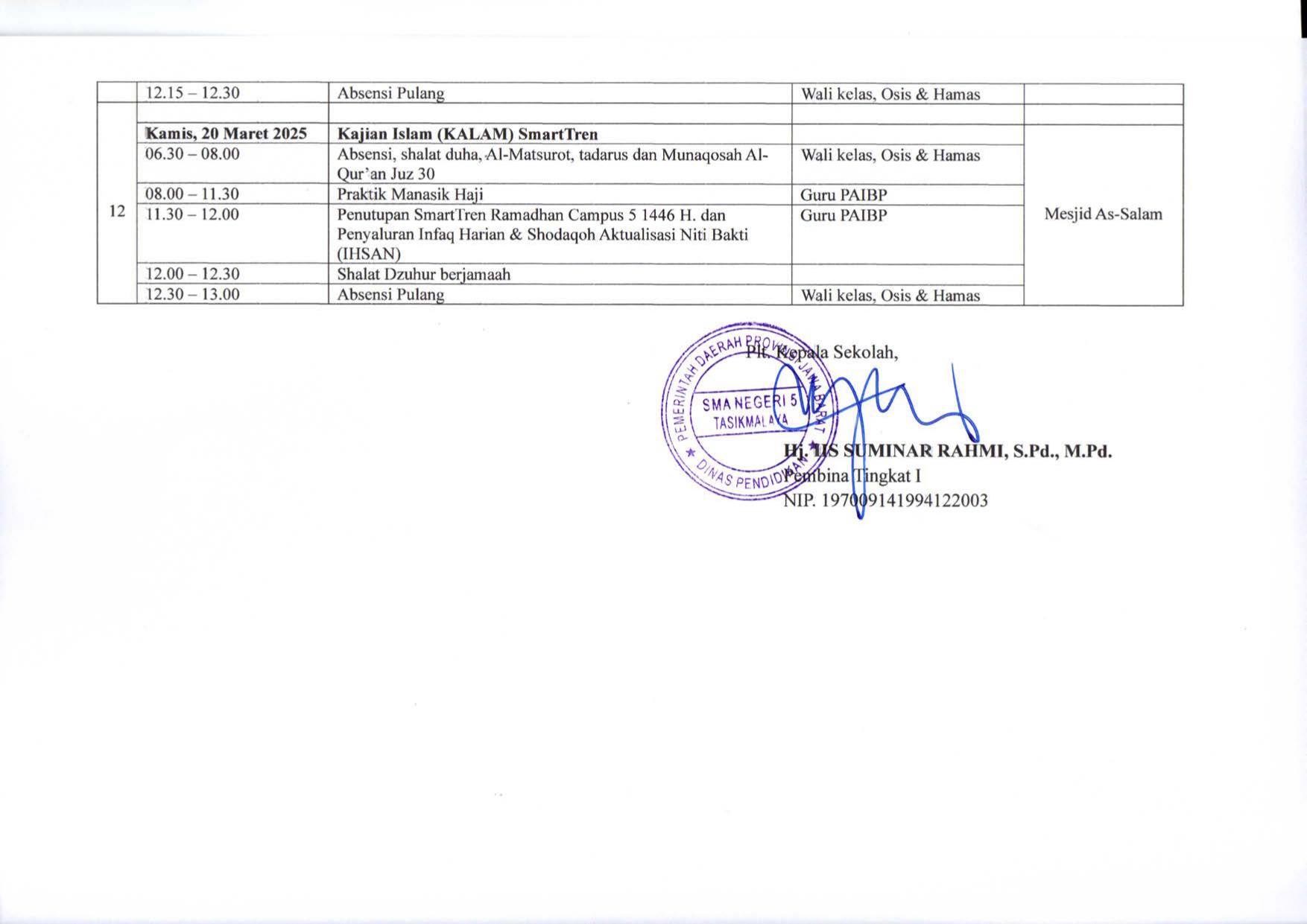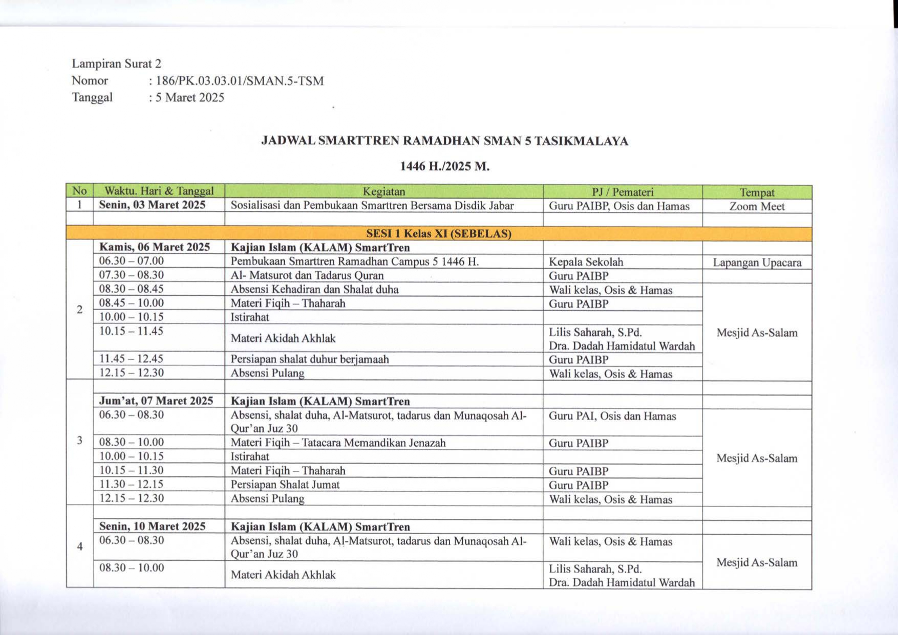 Dalam rangka mendukung penguatan kompetensi abad 21, seperti berpikir kritis, kreatif, kolaboratif, dan komunikatif, serta literasi digital, SMA Negeri 5 Tasikmalaya berupaya untuk terus memperkuat pendidikan karakter. Salah satu upaya untuk memperkuat nilai-nilai karakter adalah dengan melaksanakan kegiatan pembelajaran yang menyentuh nilai-nilai luhur, seperti yang diterapkan dalam program SmartTren Ramadhan.