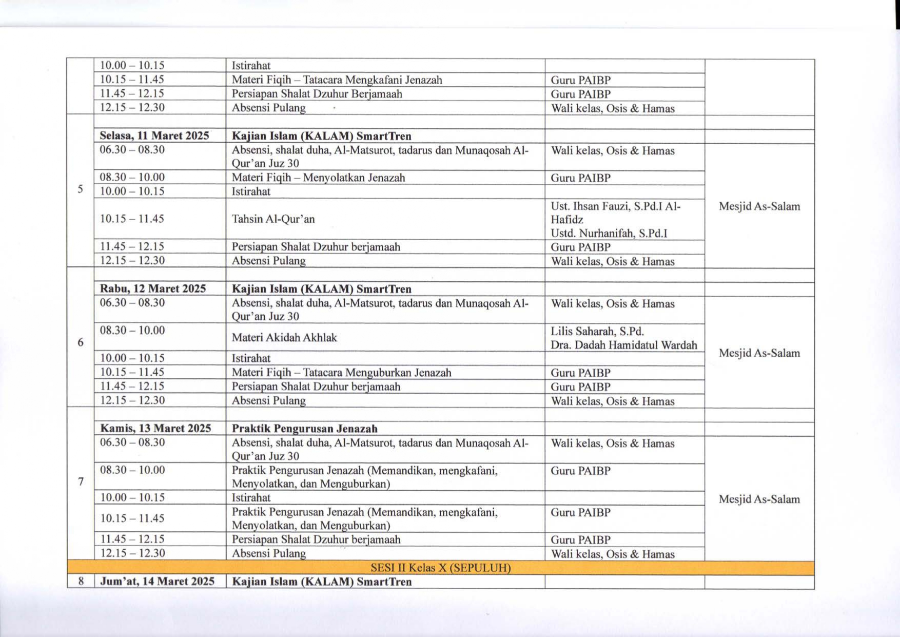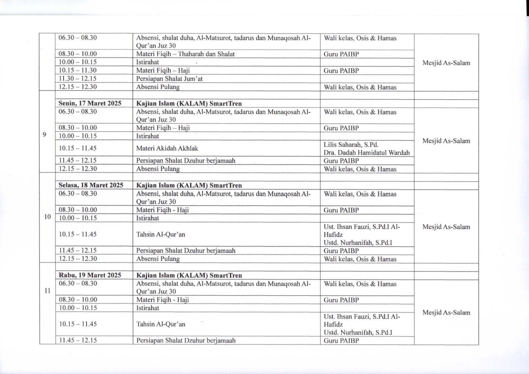 Berikut ini Jadwal Kegiatan SmarTren Ramadhan