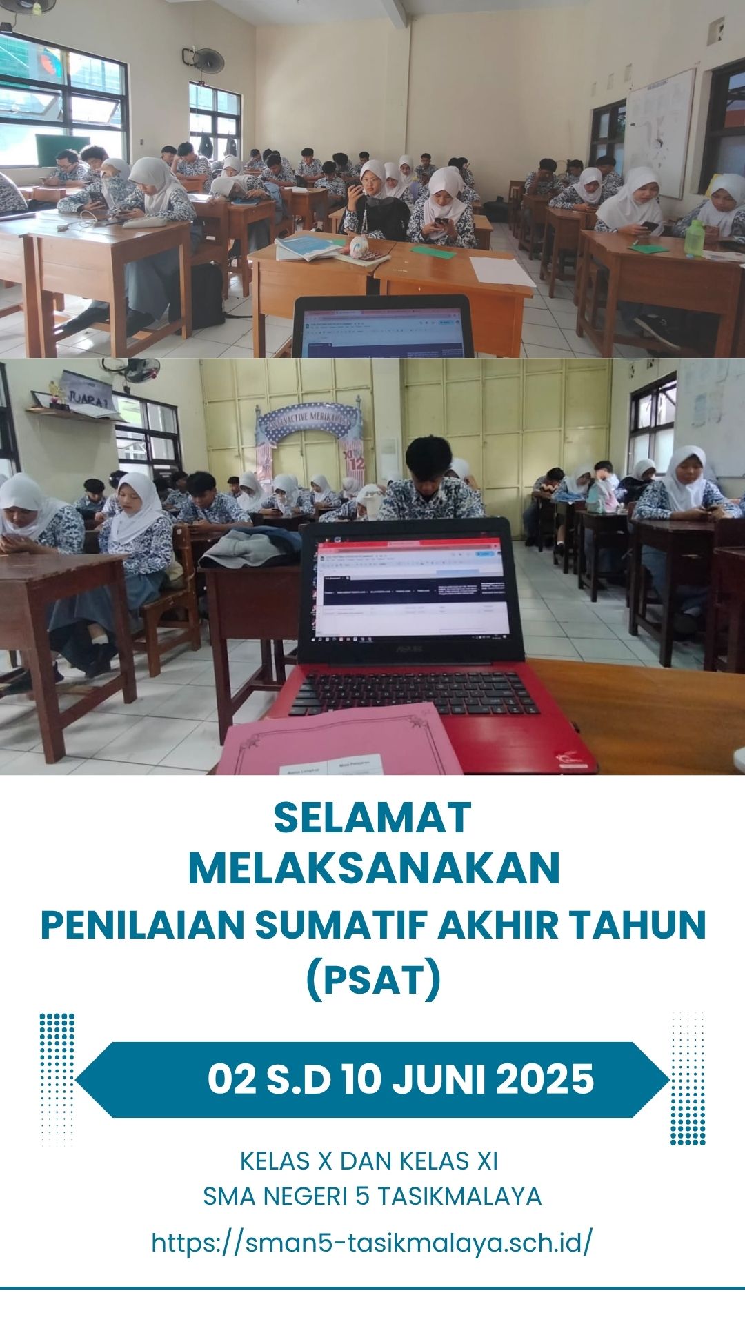 SMA Negeri 5 Tasikmalaya menggelar Penilaian Sumatif Akhir Tahun (PSAT) mulai tanggal 2 hingga 10 Juni 2025.